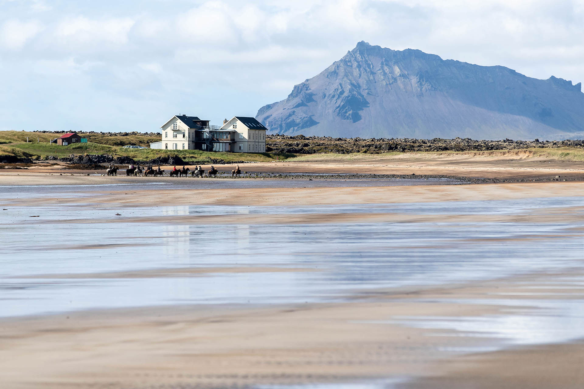 Nestled in Snæfellsbær, Lýsuhóll is a family-run horse farm offering horseback riding tours through the stunning beaches and lava fields of Snæfellsnes. Stay in cozy cottages with private facilities, enjoy delicious Icelandic meals at the restaurant, and experience the magic of the northern lights in this peaceful countryside retreat.