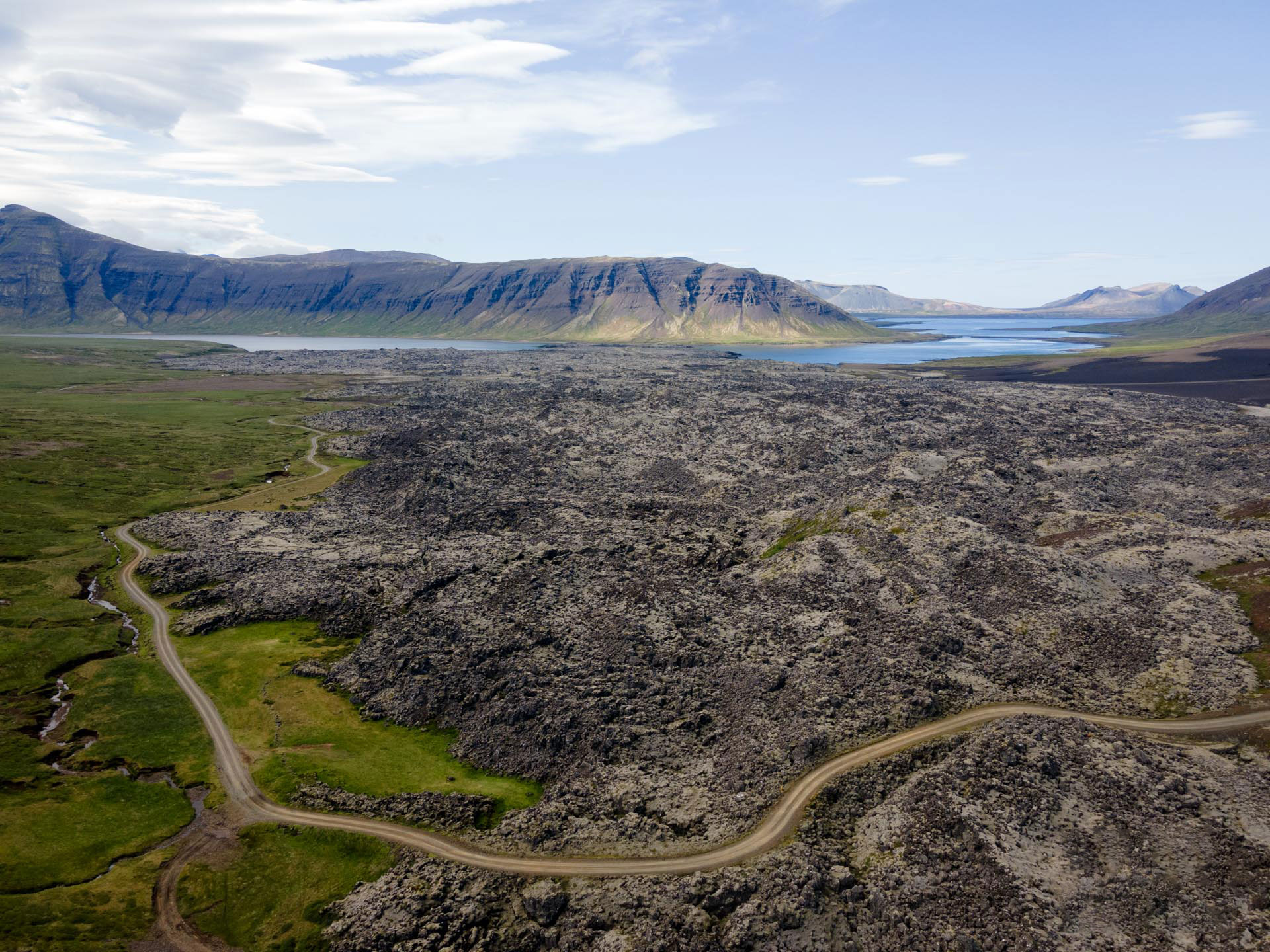 Berserkjahraun is a 4,000-year-old lava field on the Snæfellsnes Peninsula, renowned for its stunning, moss-covered rocks and unique lava formations. While it’s not a typical viewpoint, it offers a little-used tourist track that winds through this vast and beautiful landscape, surrounded by majestic volcanoes. The area is steeped in legend, with the Eyrbyggja Saga telling the tale of two Swedish berserkers who were tasked with carving a road through the harsh terrain to prove their loyalty. Today, Berserkjahraun remains a quiet, otherworldly place that feels like stepping into a piece of Icelandic folklore.