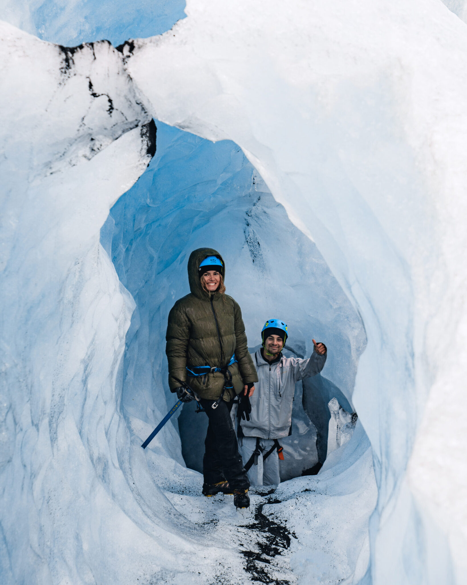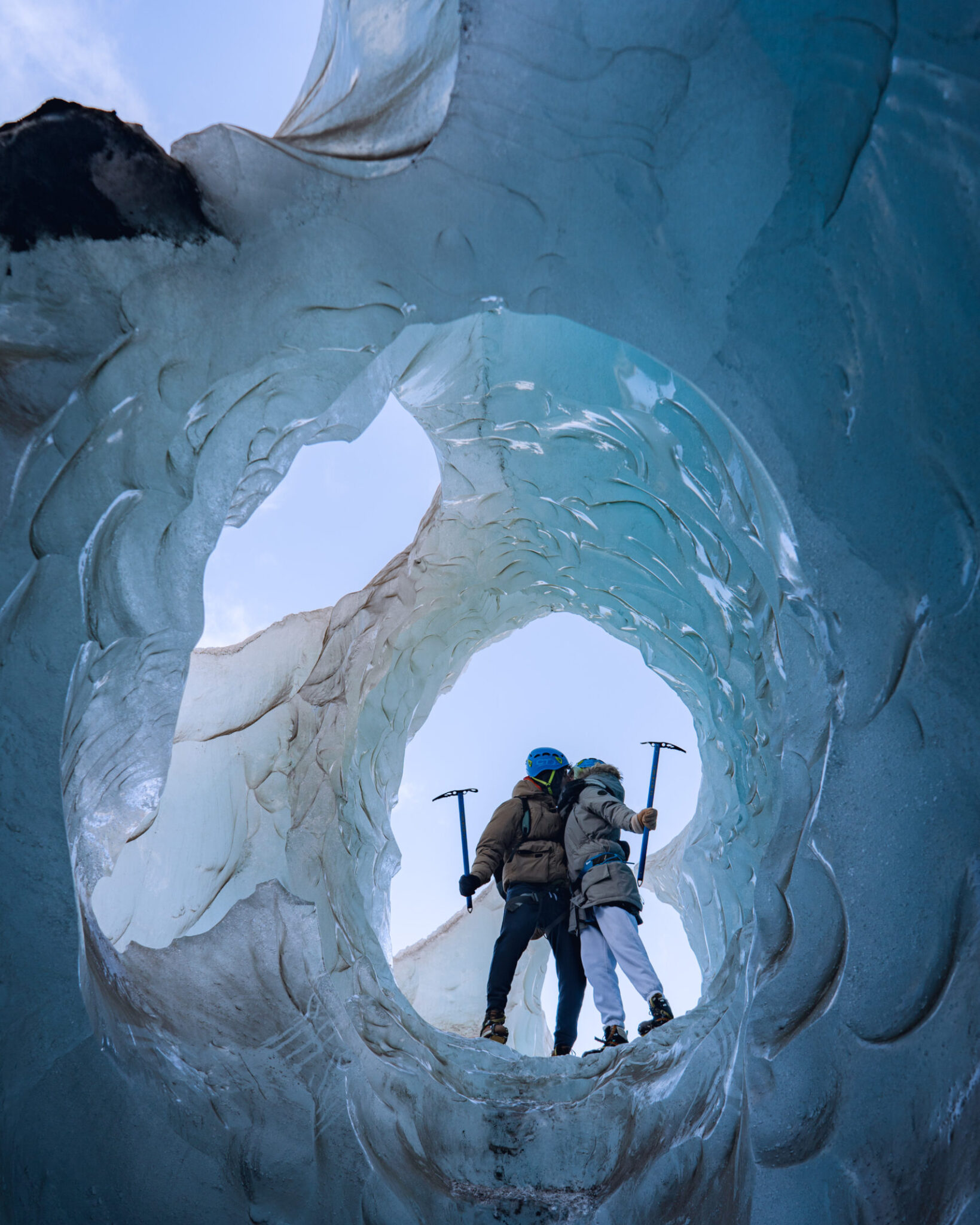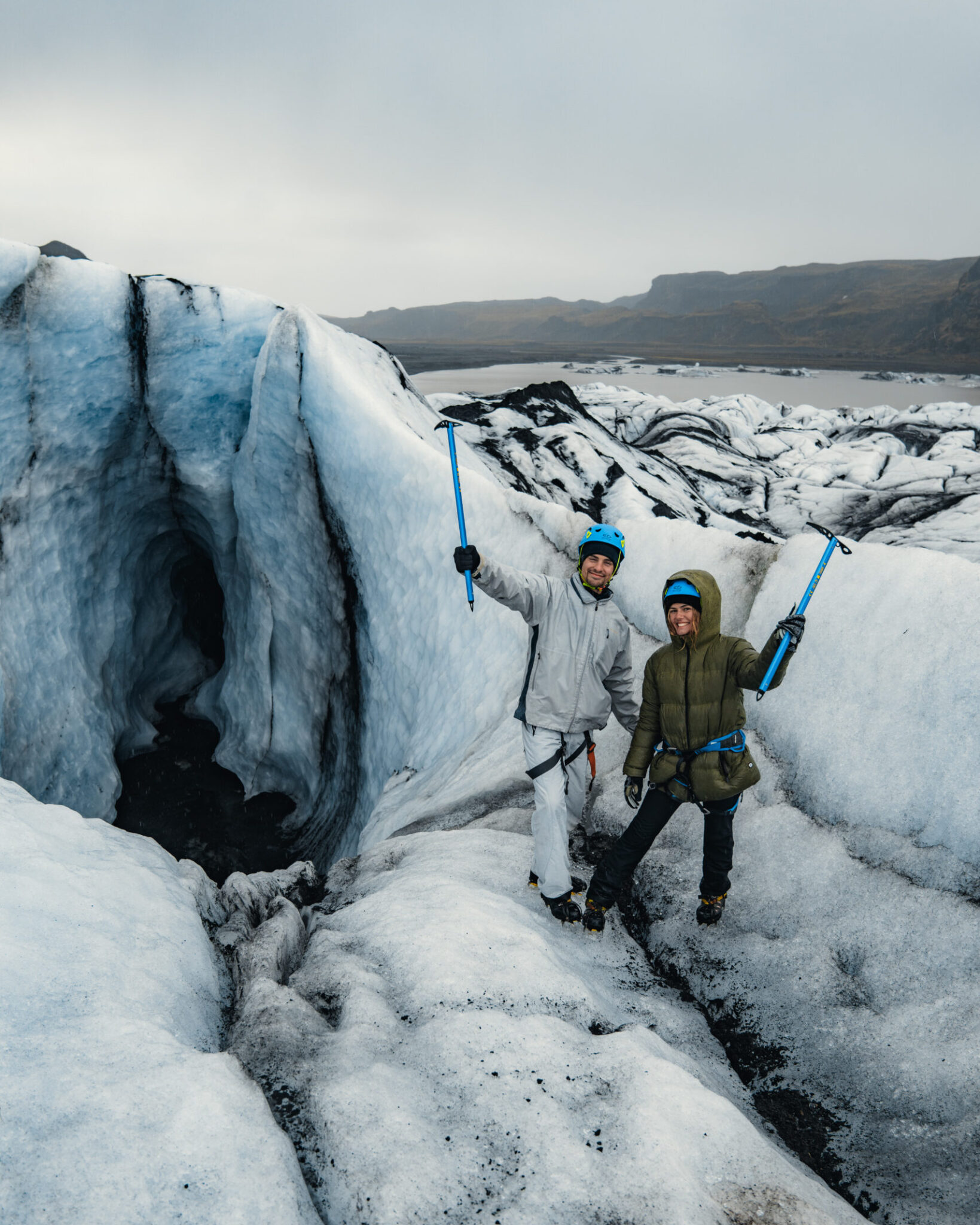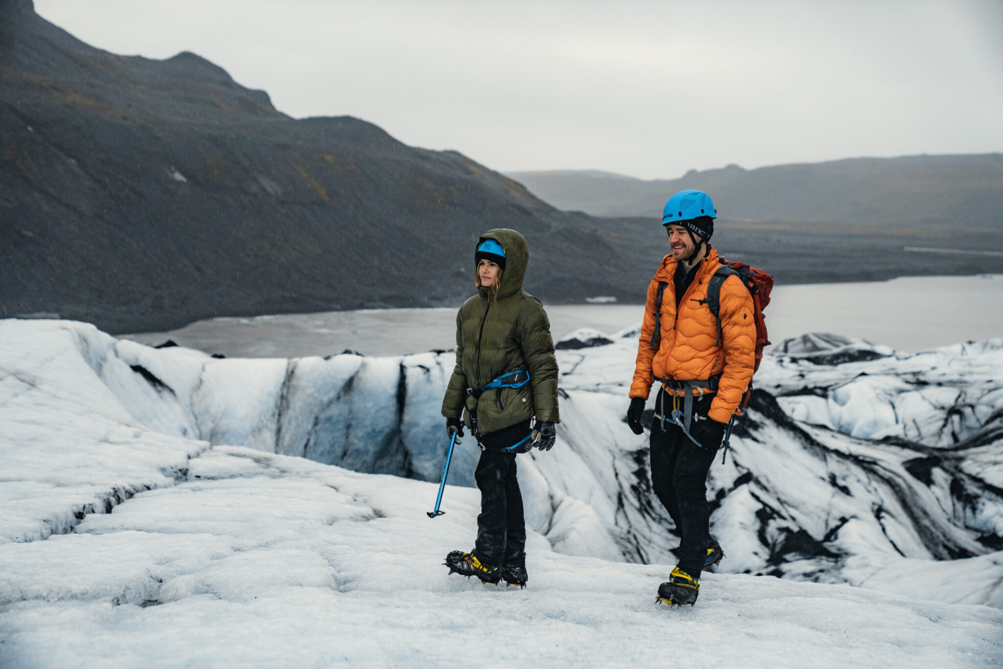 Begin with a short walk to the glacier’s edge, where your expert guide will equip you with all necessary safety gear and provide a briefing on glacier safety and geology. Then, step onto the ice for a guided hike through ash-covered crevasses, shimmering ice formations, and towering ice walls — all while your guide captures stunning photos along the way. This year-round adventure is safe, accessible, and unforgettable.