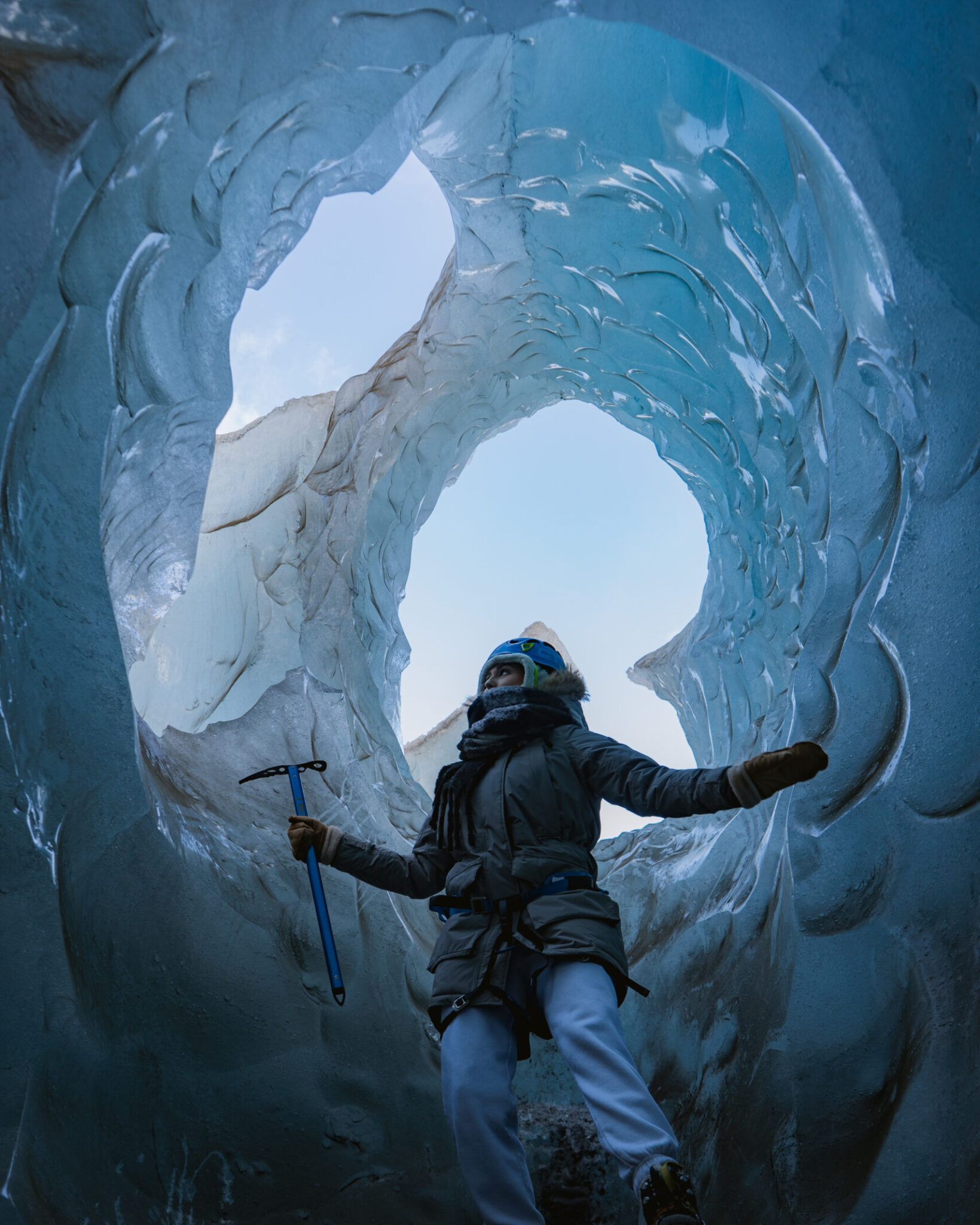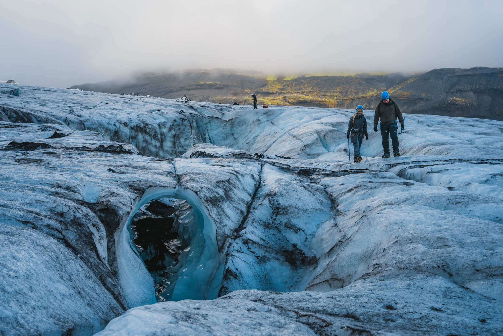 Guided hike through crevasses, ice walls, and volcanic ash.