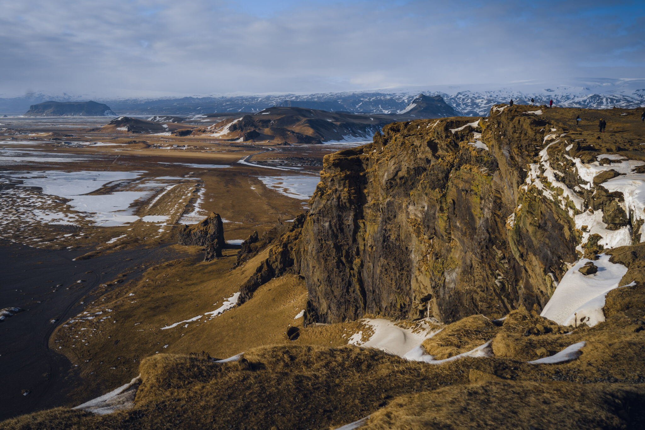 Next, enjoy breathtaking ocean views from the clifftop viewpoint at Dyrhólaey, where puffins nest in summer and the sea stretches endlessly to the horizon.