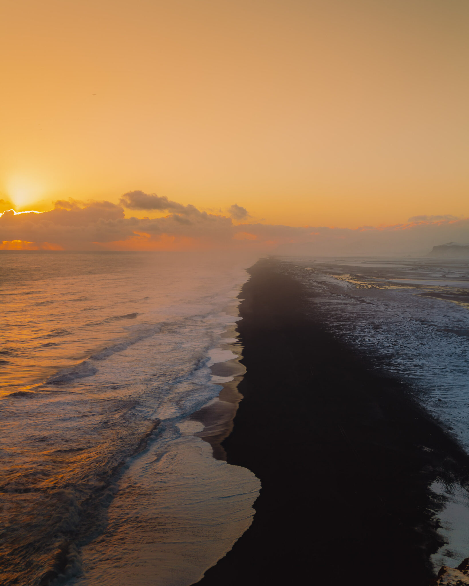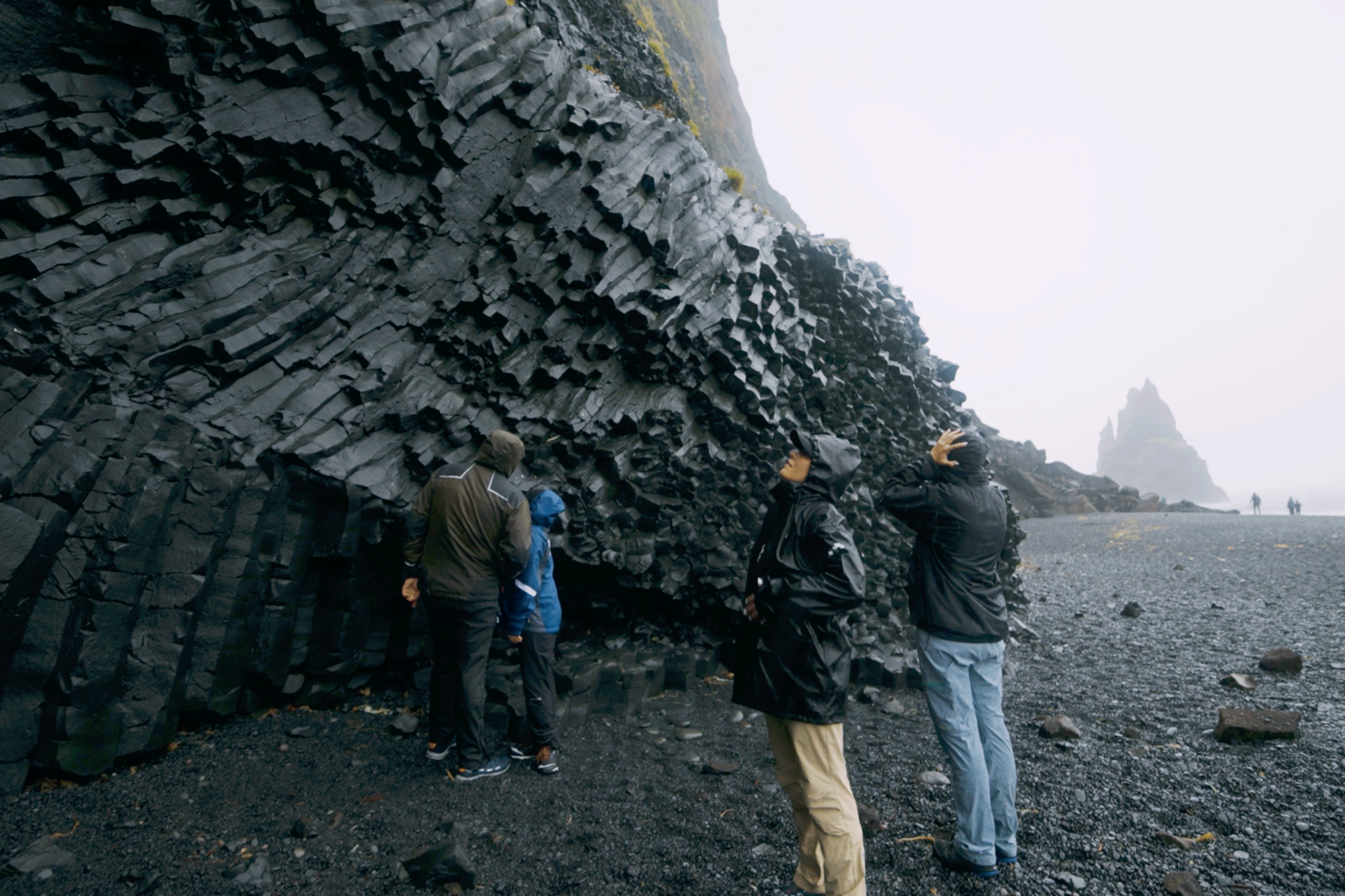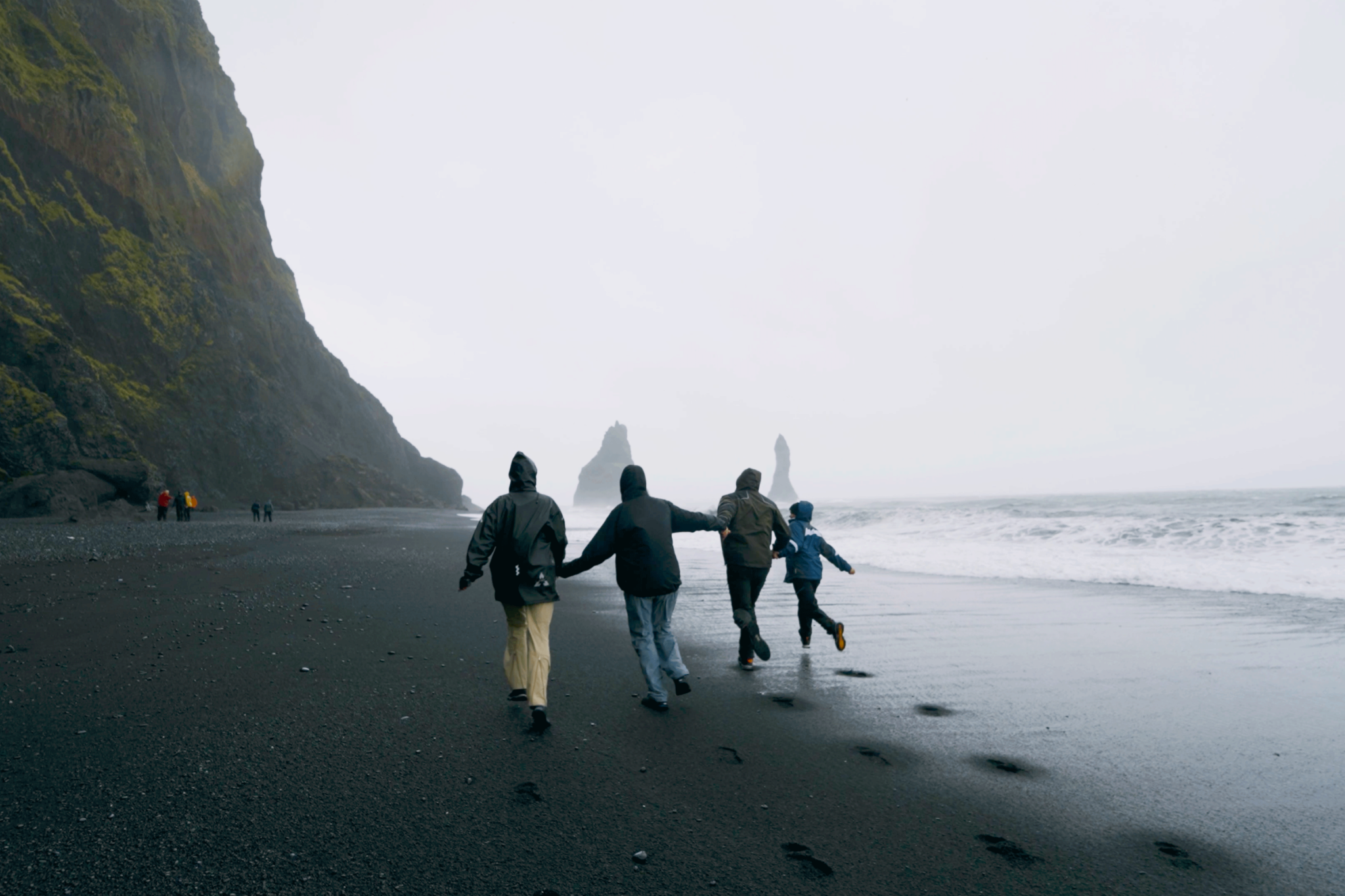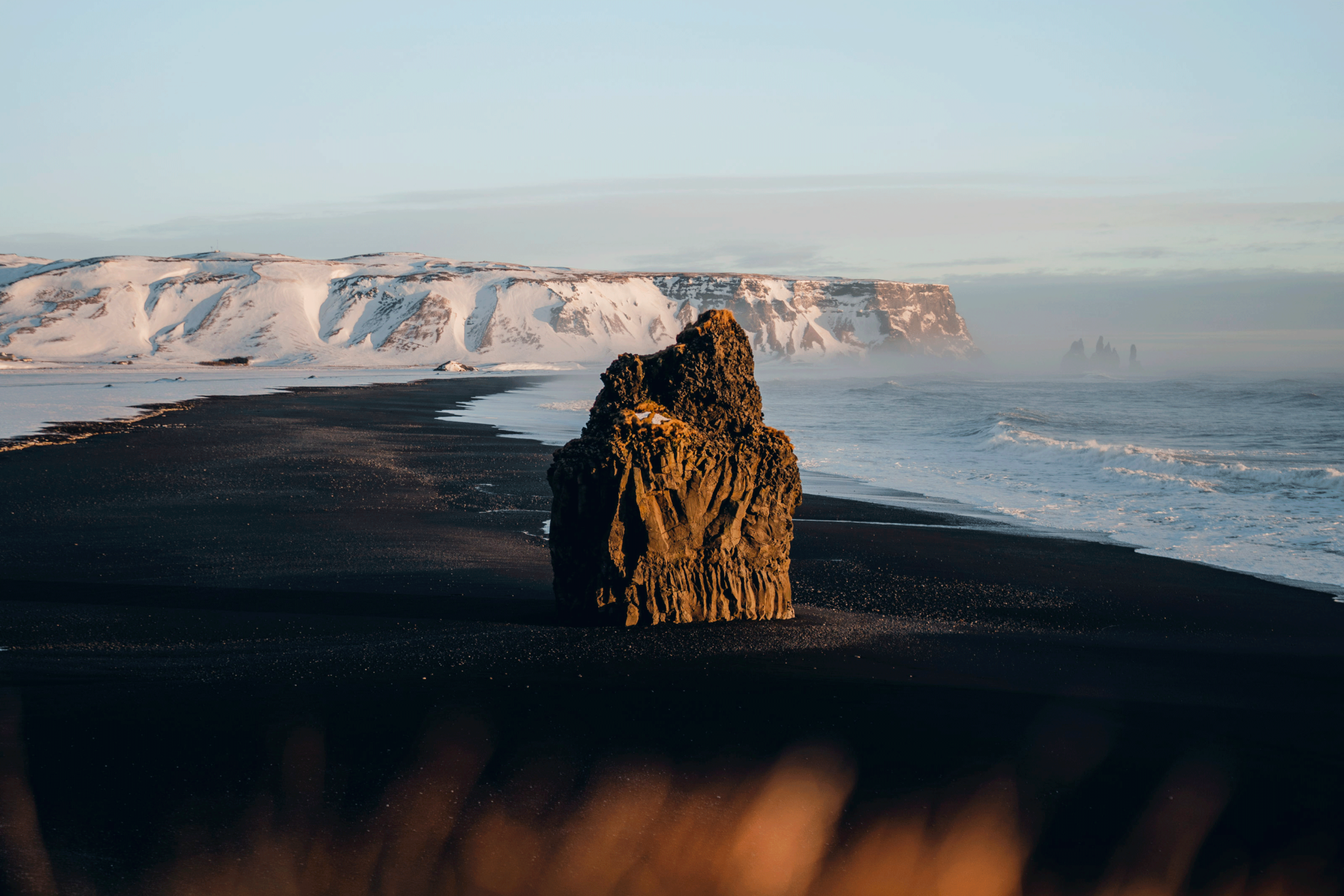 After your icy adventure, head to the coastal village of Vík for a delicious lunch at a local restaurant. Then, take a walk along the world-famous Reynisfjara Black Sand Beach, known for its basalt columns, sea stacks, and powerful Atlantic waves.