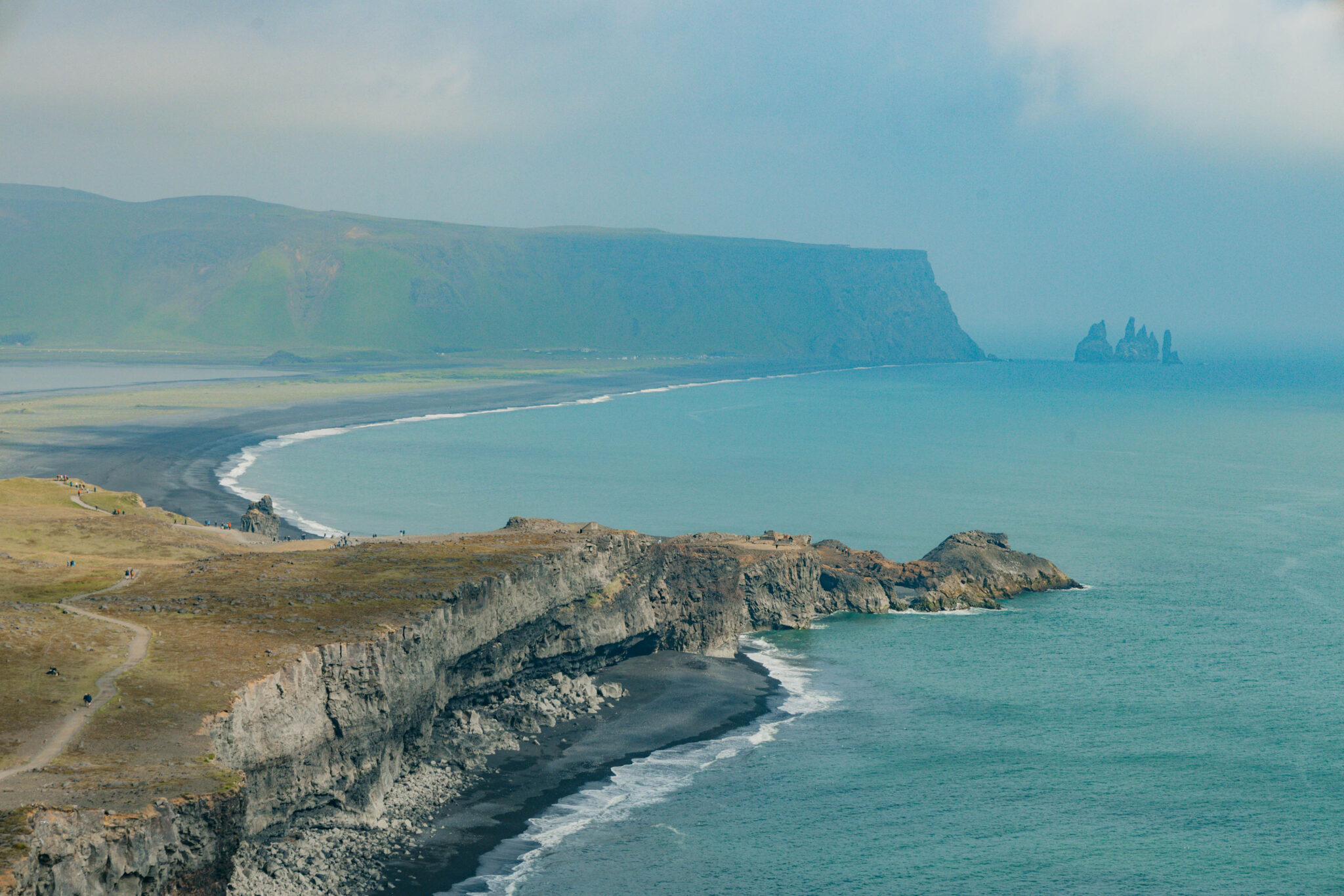 Next, we journey to Dyrhólaey, a dramatic promontory offering sweeping views over Iceland’s southern coastline. This former volcanic island is now known for its towering arch, black sand beaches, and cliffside puffin colonies (during summer months). It’s a perfect place to soak in the vastness of the North Atlantic Ocean—and maybe catch a puffin striking a pose.