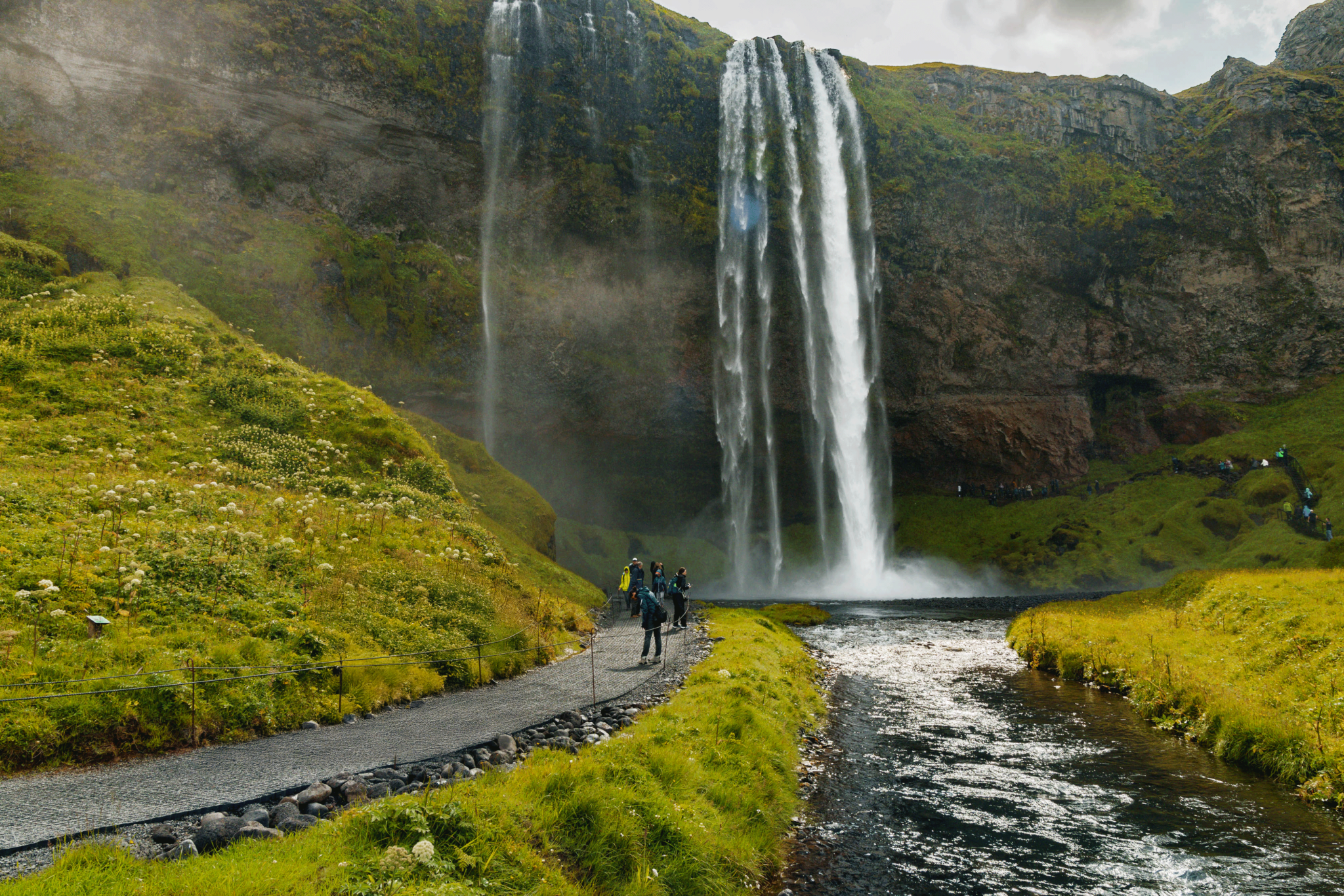 We kick off our journey at the mesmerizing Seljalandsfoss, one of Iceland’s most iconic waterfalls. Dropping from a 60-meter-high cliff, this beauty allows you to walk behind the cascade for an unreal panoramic view—just be prepared to get misted! Surrounded by moss-covered cliffs and seasonal wildflowers, it’s a true photographer’s dream. Pro tip: pack a rain jacket and waterproof shoes!